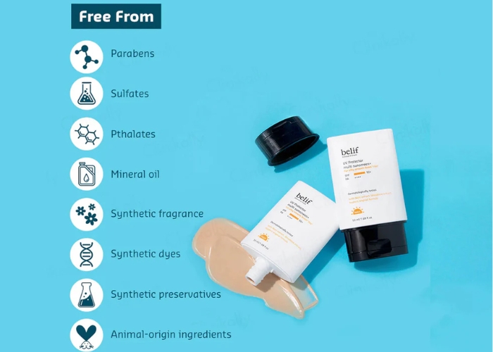 kem chống nắng Belif cam kết công thức son dưỡng môi lành tính, an toàn, không chứa các chất gây hại phổ biến: cồn, paraben, dầu khoáng, hương liệu và màu tổng hợp. Điều này làm tăng độ tin cậy và sự phù hợp cho da nhạy cảm.