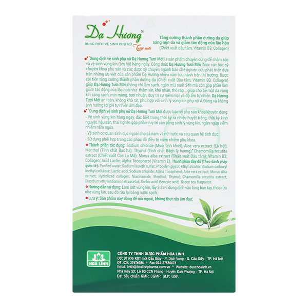 - Dạ Hương Tươi Mới không chỉ làm sạch, ngăn mùi suốt 24h mà còn góp phần làm giảm các tác động của lão hóa như thâm xỉn, khô nhăn, thô ráp...giúp cho bề mặt da vùng kín sáng sạch, mịn màng, tươi nhuận, duy trì sự mềm mại và độ ẩm tự nhiên.