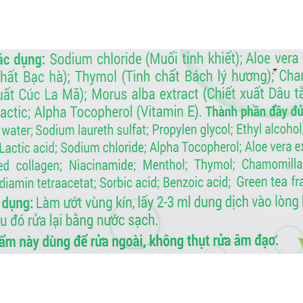 - Sản phẩm này chỉ dùng để rửa ngoài, không dùng để thụt rửa âm đạo, không được uống.