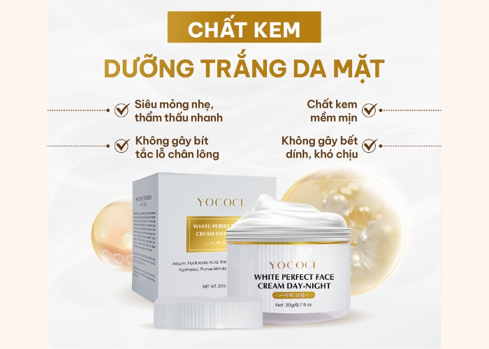 Kem dưỡng Yococi White Pefect Face Cream Day & Night chất kem mềm mịn