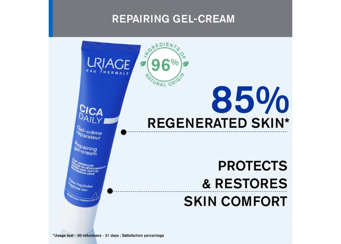 Uriage Cica Daily Gel Cream (tên đầy đủ là Bariéderm-Cica Daily Gel-Cream) là dòng kem dưỡng chuyên biệt đến từ Uriage – một trong những thương hiệu dược mỹ phẩm hàng đầu tại Pháp.