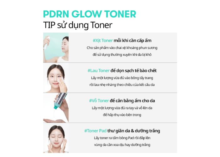 Cách dùng nước hoa hồng PDRN Glow 200ml