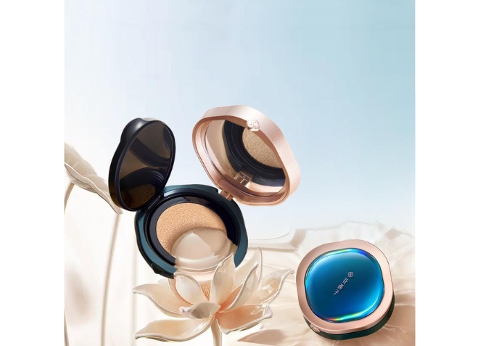 Cushion Hoa Tây Tử ngay lập tức gây ấn tượng với thiết kế đậm chất cổ phong Trung Quốc. Vỏ hộp được chạm khắc hoa văn tinh xảo, thường sử dụng tông màu vàng ánh kim hoặc đỏ thắm, mang lại cảm giác như một món đồ trang sức hơn là mỹ phẩm thông thường. Đây là điểm cộng lớn, khiến sản phẩm không chỉ là công cụ makeup mà còn là vật trang trí trên bàn phấn.