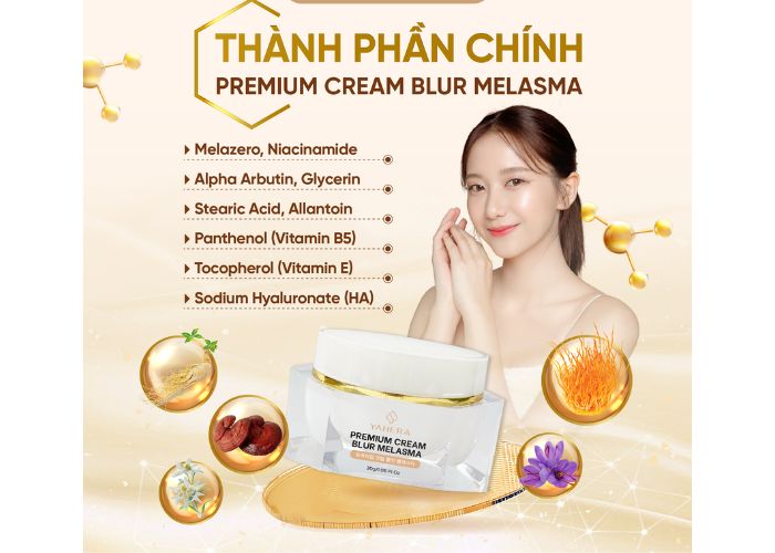 Kem mờ nám tàng nhang Yahera Premium Cream Blur Melasma hứa các chiết xuất thảo dược giúp chống oxy hóa