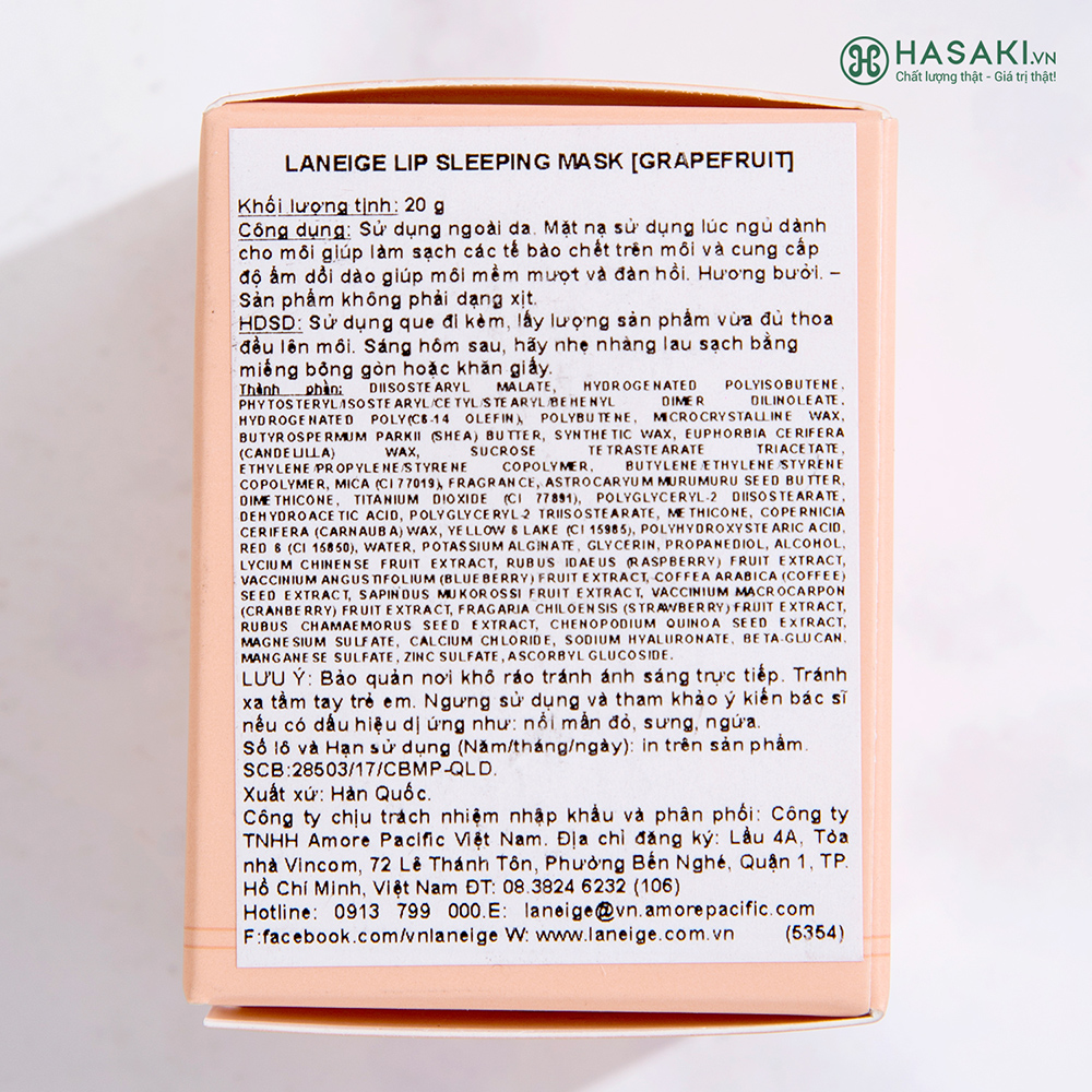 Mặt Nạ Ngủ Môi Laneige Lip Sleeping Mask EX là dòng sản phẩm mặt nạ môi bán chạy nhất của thương hiệu mỹ phẩm cao cấp Laneige (Hàn Quốc), giúp chăm sóc cho đôi môi bạn ngay cả trong giấc ngủ. Sản phẩm nhẹ nhàng làm sạch tế bào chết trên môi, làm cho đôi môi trở nên mềm mại và đàn hồi hơn, cùng với mùi thơm nhẹ nhàng từ các chiết xuất tự nhiên.