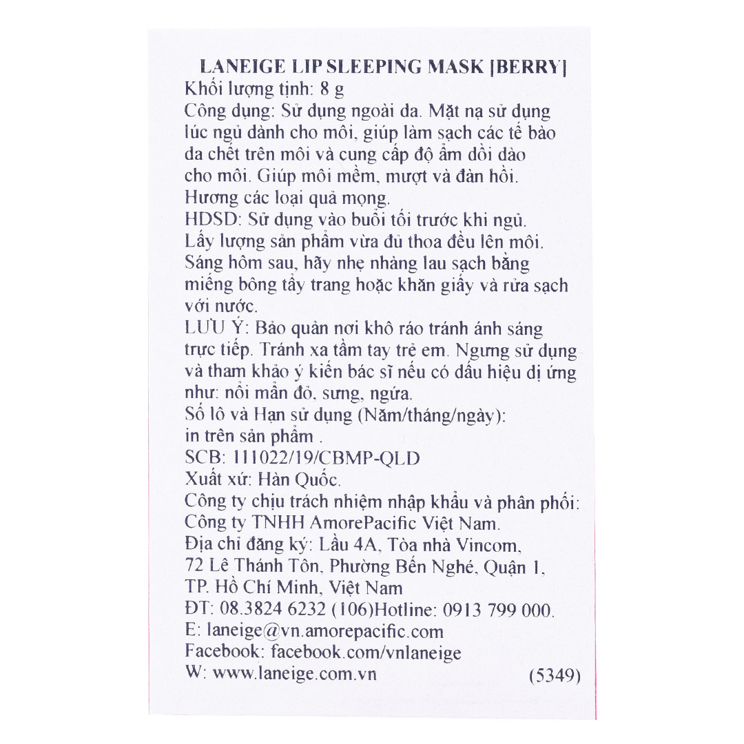 Berry - Hương Quả Mọng (sản phẩm chính của dòng mặt na ngủ dành cho môi): chứa hương thơm của các loại quả mọng sảng khoái và ngọt ngào.