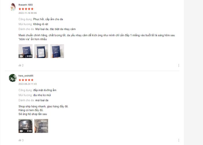 Dưới đây là một số đánh giá từ người dùng về mặt nạ Smas: