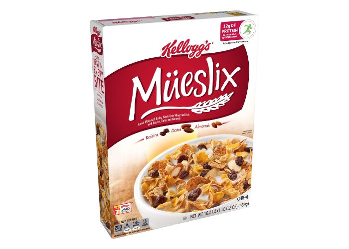 Ngũ cốc Kellogg's Mueslix là một loại ngũ cốc bao gồm các hạt ngũ cốc, hạt hạnh nhân, hạt hạt điều và trái cây sấy khô. Các thành phần của Mueslix được chọn với mục đích cung cấp một lượng dinh dưỡng tốt cho cơ thể, bao gồm các chất sợi, vitamin và khoáng chất.