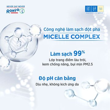 - Công nghệ Micelle Complex nhẹ nhàng làm sạch sâu 99% lớp trang điểm lâu trôi, kem chống nắng và bụi mịn PM2.5