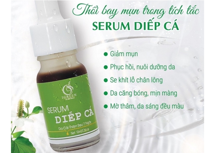 Serum diếp cá iGreen được quảng cáo với các công dụng chính, tập trung vào việc chăm sóc da mụn và phục hồi da: