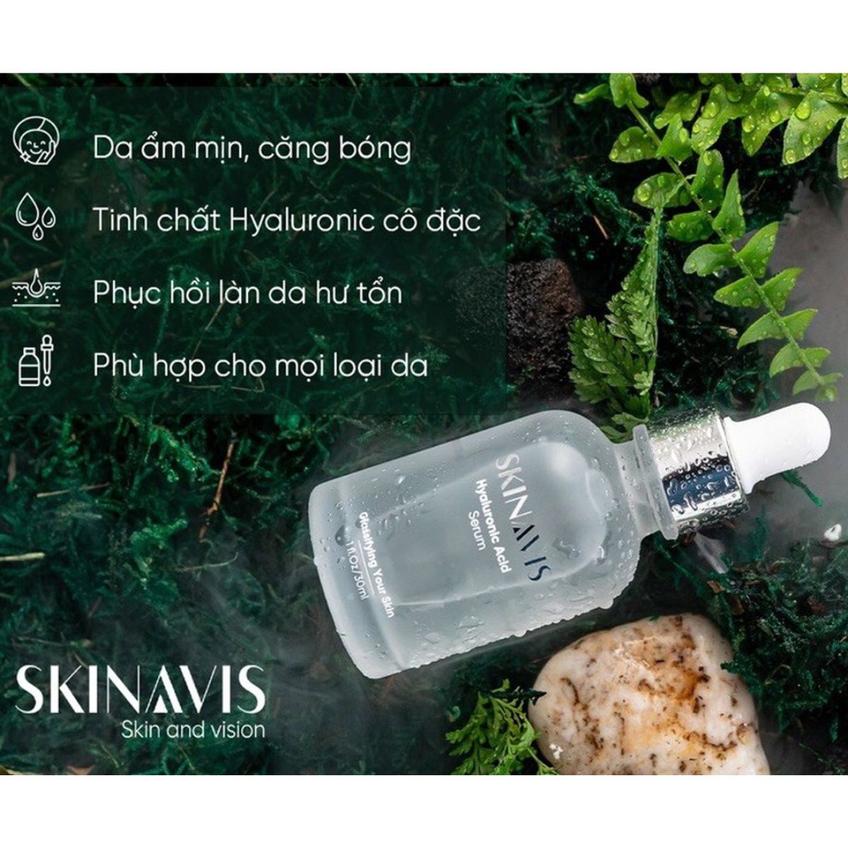 Skinavis Serum thuộc dạng serum thuần HA, với HA chiếm tỷ trọng chủ yếu trong thành phần sản phẩm giúp thẩm thấu sâu vào nhiều tầng da, đồng thời giảm bớt khoảng trống bên trong da. Mang lại khả năng hút ẩm, giữ nước tối ưu, không gây rít và bít tắc nang lông.