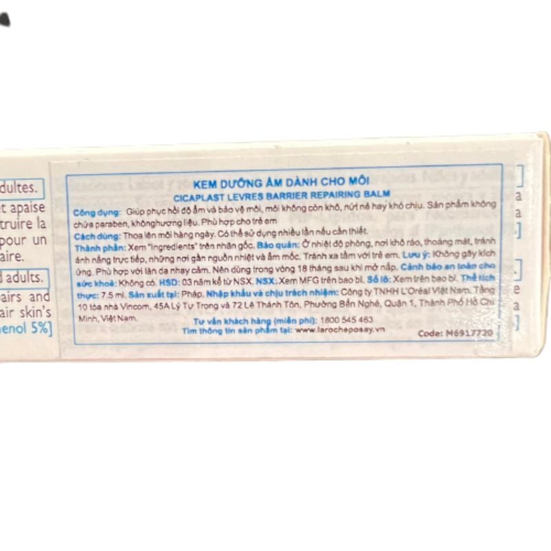 Kem Dưỡng Giúp Hỗ Trợ Phục Hồi Độ Ẩm & Bảo Vệ Môi La Roche-Posay Cicaplast Lips 7.5ml