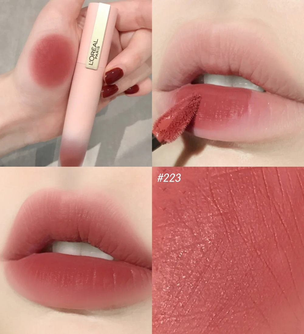 Son Mịn Lì Cao Cấp L’Oréal Paris Chiffon Signature Matte Liquid Lipstick bộ sưu tập Chiffon Signature mới với 9 tông màu son kem thời thượng, nổi bật cho nàng dễ dàng chọn lựa. Kết cấu son siêu nhẹ như mây và có độ dưỡng ẩm, cho cảm giác cực kỳ thoải mái khi thoa, môi "trần" nhẹ tênh. Hiệu ứng soft-matte với finish mịn mờ, mềm mại như nhung trên môi. Chứa các hạt sắc tố màu cao, cho khả năng lên màu cực chuẩn ngay từ lần quẹt đầu tiên và giữ màu lâu, bền màu lên đến 8h. Thiết kế đầu cọ son mềm, dáng cong giúp cọ dễ lướt trên môi, dễ tán son và tạo viền môi xinh. Mang đến đôi môi gợi cảm và cực kì quyến rũ cho phái đẹp. Công thức đặc biệt có thể dùng được cho cả môi và má.