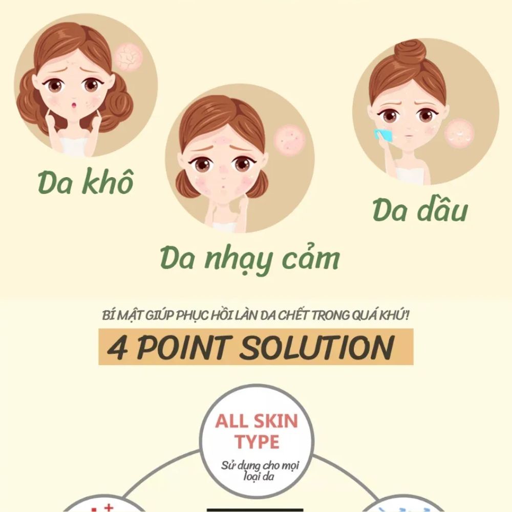 Giải pháp cho tình trạng da: Đặc biệt phù hợp cho da bị mất cân bằng, da thiếu sức sống và da có vết thâm. Sản phẩm giúp da trở nên sáng hơn, mịn màng và cân bằng độ ẩm tự nhiên.