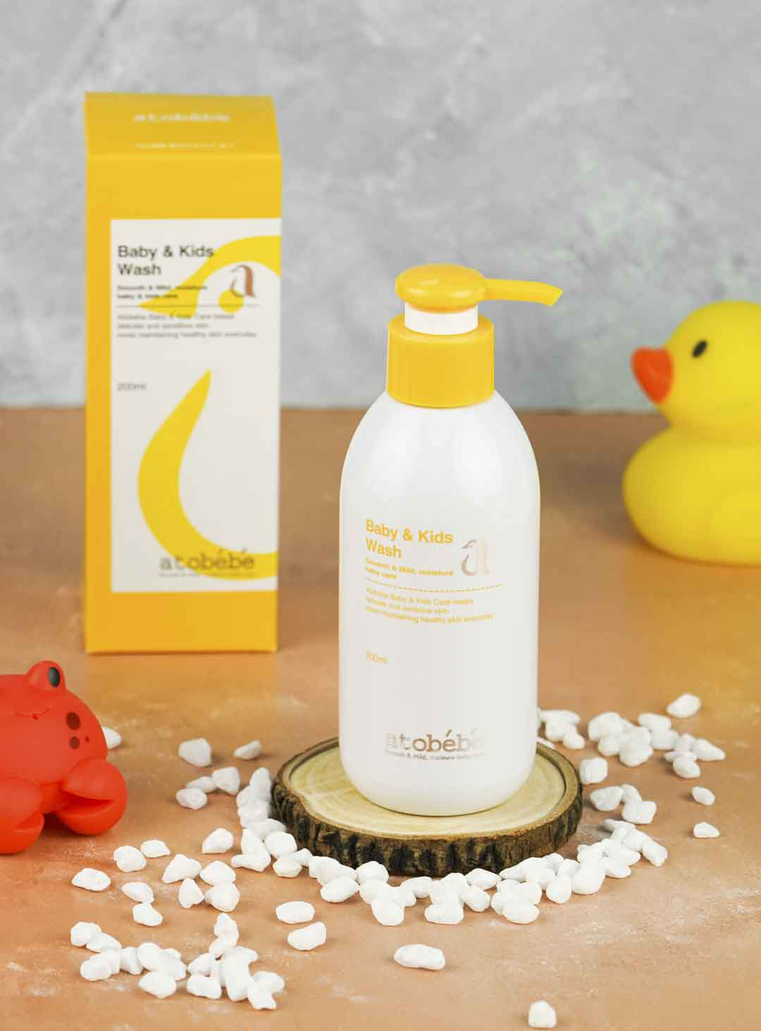 Sữa tắm gội Atobébé Baby & Kids Wash loại bỏ bụi bẩn từ đầu đến chân trong cùng một lúc, không kích ứng da đồng thời cung cấp độ ẩm cho da.