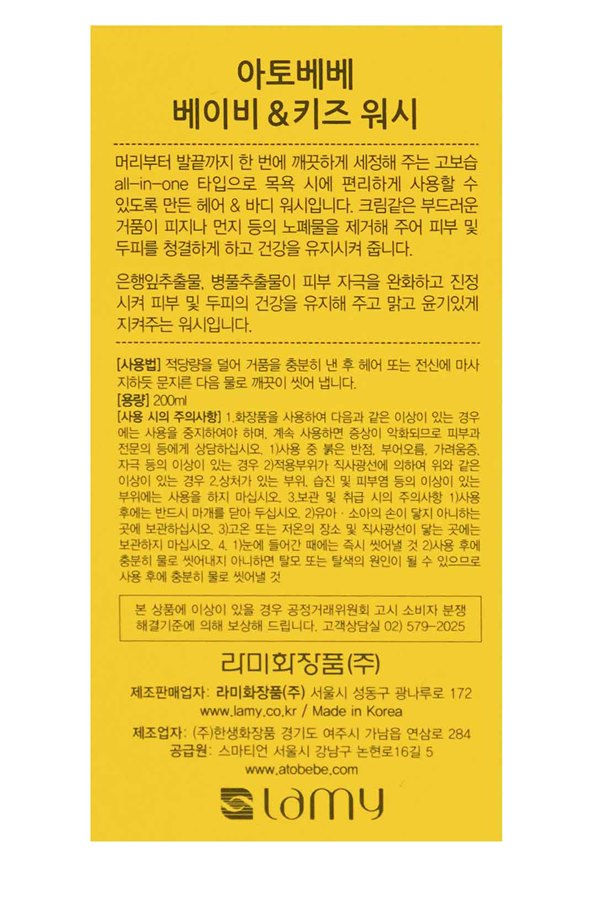 Sữa tắm gội trẻ em Atobébé Baby Kids Wash Hàn Quốc phù hợp cho da nhạy cảm, da dị ứng, chàm, rôm sảy ở trẻ em từ sơ sinh.