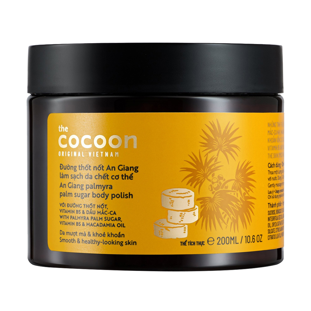 Tẩy Da Chết Cơ Thể Cocoon Đường Thốt Nốt An Giang là sản phẩm tẩy tế bào chết toàn thân đến từ thương hiệu mỹ phẩm thuần chay Cocoon của Việt Nam, với tinh thể đường thốt nốt mềm mịn từ vùng đất An Giang kết hợp cùng dưỡng chất vitamin B5 và dầu mắc-ca giúp nhẹ nhàng lấy đi các tế bào chết sần sùi mang đến làn da mềm mịn, sáng mượt và khỏe khoắn.