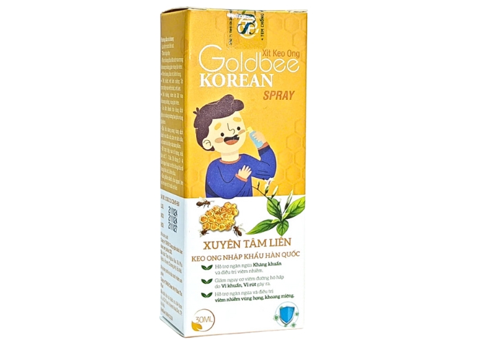 Xịt Keo Ong Goldbee Korean Spray (hay còn gọi là Goldbee Propolis Throat Spray) là sản phẩm xịt họng keo ong từ Hàn Quốc, được nhiều người tìm mua để hỗ trợ giảm viêm họng, ho khan và tăng đề kháng tự nhiên. Tuy nhiên, sau khi kiểm tra trên các nguồn uy tín (Shopee, Lazada, nhà thuốc online và website Hàn Quốc), sản phẩm này chưa phổ biến rộng rãi tại Việt Nam dưới tên chính thức "Goldbee". Một số thương hiệu tương tự như Probee (Seoul Propolis) hoặc Workerbee từ Hàn Quốc thường bị nhầm lẫn hoặc bán dưới tên gần giống.