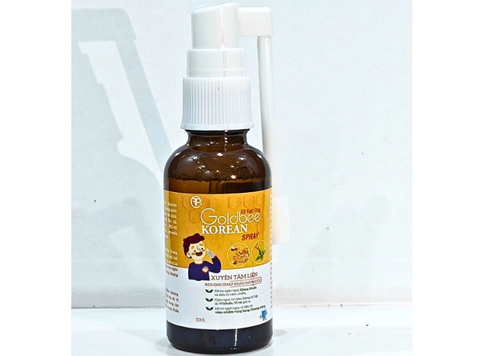 Goldbee Korean Spray là xịt họng keo ong từ Hàn Quốc, thuộc dòng sản phẩm chăm sóc hô hấp tự nhiên. Sản phẩm dạng xịt chai nhỏ (thường 30ml), dễ mang theo, chứa keo ong propolis kết hợp thảo dược. Công dụng chính hỗ trợ giảm viêm họng nhẹ, ho khan, đau rát cổ họng, hôi miệng và khản tiếng.